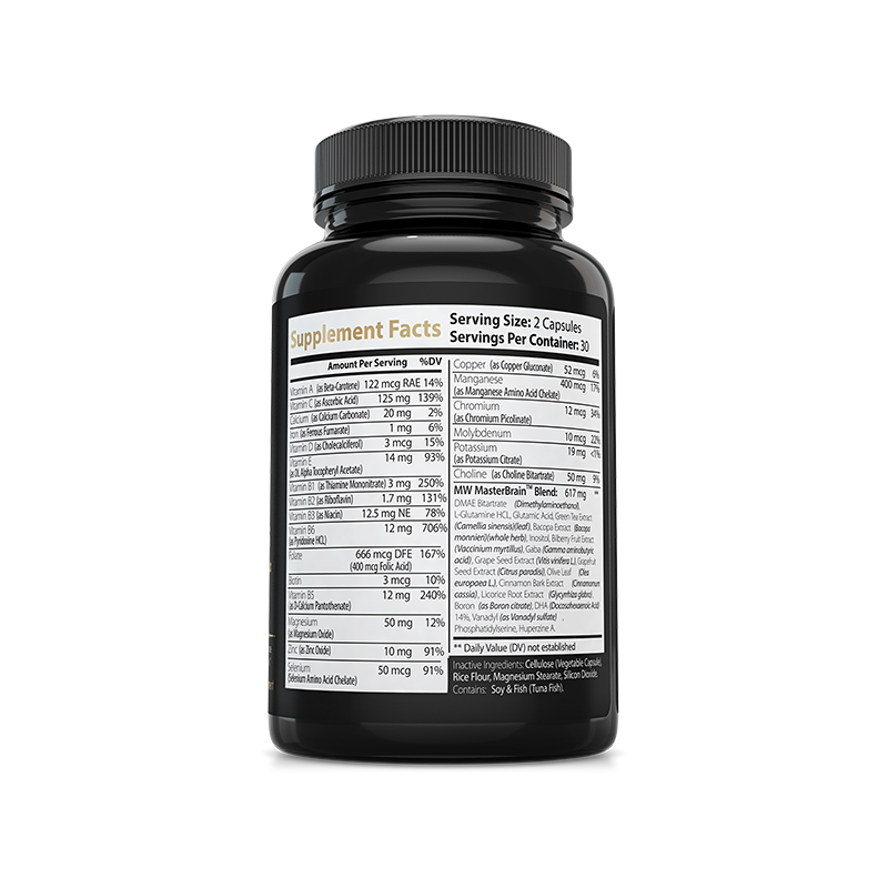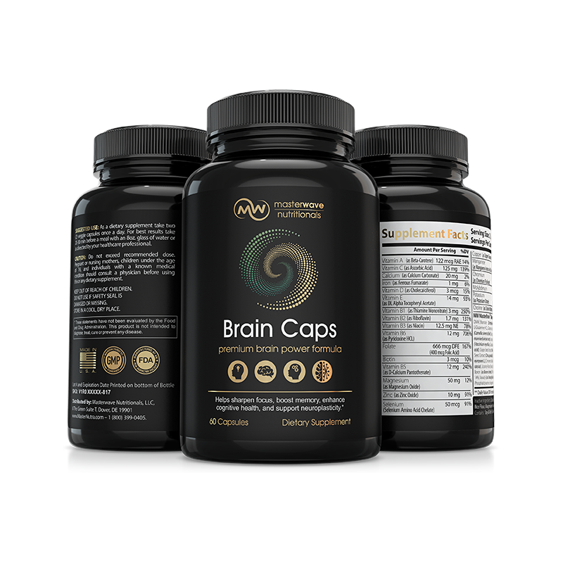 MasterWave Brain Caps pack nature's most powerful "smart" nutrients in one convenient formula to help support laser-sharp focus, sustained mental energy, a steel-trap memory and peak creativity.